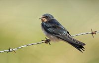 Het juveniel van de boerenzwaluw lijkt sterk op een volwassen exemplaar, maar heeft wat kleine verschillen in het verenkleed. Zo zijn de donkere veren aan de bovenzijde bruiner en doffer, de lichte veren aan de onderzijde witter en de steenrode veren op keel en voorhoofd bleker. Bovendien heeft de juveniel nog niet de lange, diep gevorkte staartveren van een volwassen vogel.[11] Jongen van boerenzwaluwen met asymmetrische staarten vertonen vaak dezelfde verschillen in de staartveerlengtes als hun ouders. Een verschil in vleugellengte wordt echter niet door de ouders aan de jongen doorgegeven.[