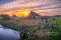 Boetje van Kikkert aan de Watermolenweg nabij Den Hoorn tijdens zonsondergang.