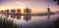 Panorama van boezem molen nr. 6 in Haastrecht bij zonsopkomst.