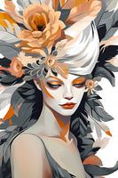bohemian beauty portret van een vrouw met veren en bloemen in haar hoofd