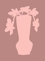 Bohemian illustratie: vaas met bloemen in roze. Eenvoudige, basic illustratie. Abstract en modern.
