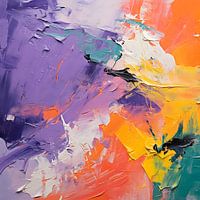 Modern abstract kunstwerk, paletmes techniek met kleurrijke penseelstreken, levendige kleuren die energie en passie oproepen. Een dynamische compositie met een sfeer van creativiteit en expressie.
