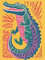 In dit kunstwerk wordt een krokodil tot leven gebracht in een mix van levendige en vrolijke kleuren en tinten, die prachtig samensmelten en een bijzondere sfeer oproepen.