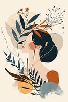 Details: portret, vrouw, botanisch, beige, oranje, groen, abstract, modern, stijlvol, natuur, Natuurlijk wonen