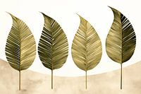 Een betoverend schilderij dat de warmte van de natuur omarmt in een prachtige saliegroene boho-stijl. Op een canvas ontvouwen zich een viertal van abstracte afbeeldingen van palmbladeren, samen dansend in harmonie met de subtiele bries van de verbeelding.