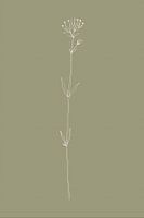 Line art witte bloem op salie groene achtergrond. Bloemige semi abstracte minimalistische kunst met een beetje retro vibes. Perfect voor een woonkamer, slaapkamer, wachtkamer, werkkamer, tuin of hal. Bohemian, Zen, Scandinavisch, Basic, New Rural, Romantic, Japandi woonstijl.