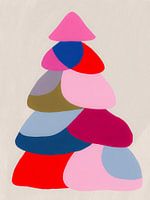 Deze minimalistische boho-illustratie speelt met felle, gedurfde kleuren die samen een abstracte kerstboom vormen. Het ontwerp bestaat uit verschillende kleurrijke, organisch gevormde blokken die de boom creëren: van zachte roze tinten tot diepblauw en levendig rood, met een subtiele groene basis. De vormen zijn eenvoudig, maar de impact is groot, wat het werk doet opvallen in elke ruimte. Het zachte, neutrale achtergrondkleurtje zorgt ervoor dat de heldere kleuren van de vormen extra tot leven komen. Deze moderne kerstboom heeft geen traditionele takken of versieringen, maar de kleurrijke lagen geven het geheel een frisse, eigentijdse uitstraling. Het is een speelse en kunstzinnige benadering van de feestdagen, perfect voor wie houdt van unieke en abstracte kunst in hun interieur. Het werk combineert de vrolijkheid van kerst met de gedurfde eenvoud van boho-esthetiek, waardoor het een tijdloos decorstuk is dat het hele jaar door bewonderd kan worden.