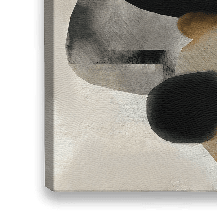 Abstract geometrisch werk van Roberto Moro met natuurlijke tinten.