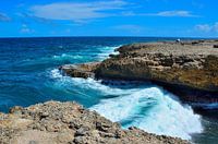 Boka Tabla is een van de hoogtepunten van het Shete Boka National Park in Curaçao. Hier komen een rotsachtig landschap en de (wilde) zee, met hoog opspattende golven, bij elkaar. De foto is genomen op 9 februari 2025.