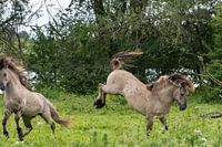 Wild bokkend konikpaard in De Blauwe Kamer in Wageningen