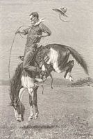 Op deze ets zien we een een man, een cowboy, een wild paard temmen op de Amerikaanse prairie. Hier bokt het paard om de ruiter er af te gooien en daarbij vliegt de kerel zijn cowboyhoed van zijn hoofd.