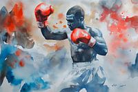 Met krachtige penseelstreken legt het kunstwerk het dynamische moment vast van een bokser die klaar is voor de strijd. De felle rode kleuren contrasteren indrukwekkend met de koele achtergrond en brengen energie en vastberadenheid over. Ideaal voor een sportieve woonkamer of trainingsruimte waar inspiratie en motivatie nodig zijn.