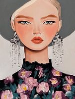 Stijlvol fashion-portret met een sterke vrouwelijke uitstraling, perfect voor een interieur dat luxe en karakter ademt.