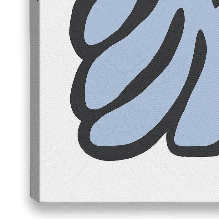 Minimalistische abstracte bloem in licht blauw met donker grijs.