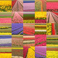 Een extreem kleurrijke collage van 25 foto's gemaakt in de bollenvelden rond Hillegom en Noordwijkerhout.