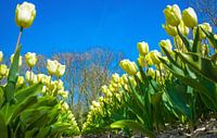 Bollenveld met gele tulpen. Gefotografeerd in de Flevopolder. Hier vind je uitgestrekte tulpenvelden. Er zijn zelfs routes uitgestippeld om optimaal van de bloemen te kunnen genieten. Een mooi stukje Nederland.
