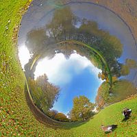 Dit buispanorama is samengesteld uit zestien foto's, gemaakt op een zonnige novemberdag in de zuidwesthoek van Het Park in Rotterdam. Het Park wordt, om verwarring met andere parken te voorkomen, ook wel aangeduid als "Het Park bij de Euromast"; dit Rotterdamse icoon is onder in het beeld te zien. Boven in beeld zorgt de spiegeling van de bomen in de vijver voor een verrassende omkering van het perspectief. Twee nijlganzen vragen zich intussen verwonderd af wat die meneer met die camera aan het doen is.