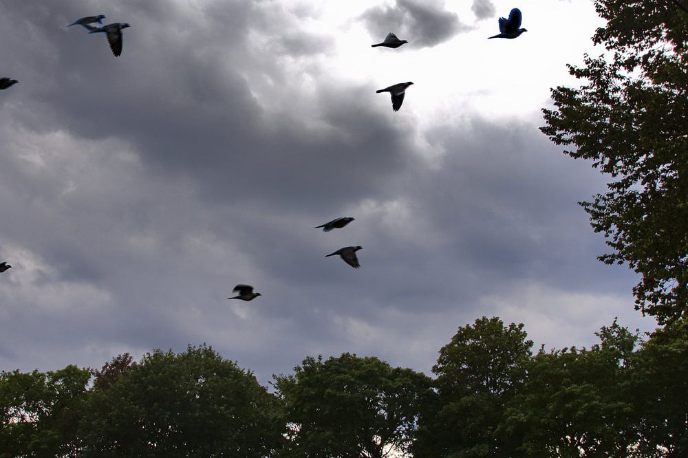 Bomen in de wind in het landschapsbehoudgebied tussen Gelsenkirchen en Herten