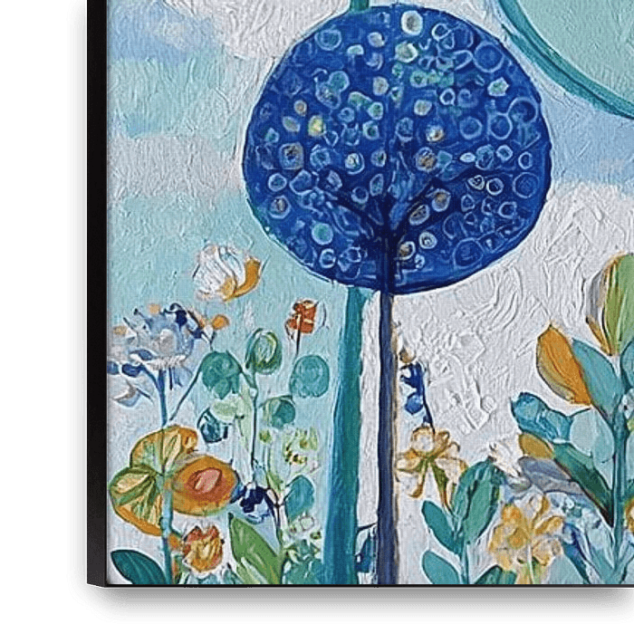 Details: bomen, kleuren, groen, blauw, geel, bloemen, modern, abstract, kunst, natuur
