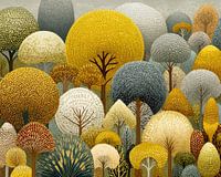 Bomen Geel - Dit natuur schilderij toont een kleurrijke verzameling van bomen in verschillende vormen en texturen, met nadruk op de warme tinten van geel en bruin die samen een levendige uitstraling creëren.