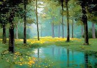 Koop dit landschapskunstwerk Bomen | Gouden Oever Reflectie van Kunst Kriebels als print op canvas, aluminium dibond, (ingelijste) fotoprint, behang en ArtFrame. Voor jou op maat geprint in Fine-Art kwaliteit.