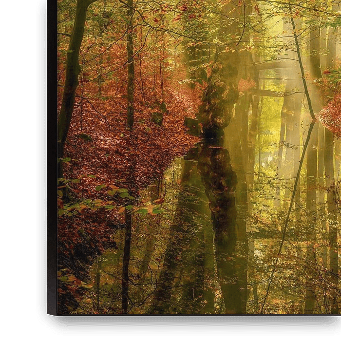 Door het mooie Leuvenumse Bos kronkelt de Leuvenumse Beek die in de vroege ochtend er als een spiegel bij ligt. Hierdoor worden het mystieke gouden ochtendlicht en de overhangende bomen prachtige weerspiegeld.