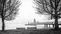 Bomen en aangezicht van Deventer Overijssel Nederland in de mist in het Zwart wit