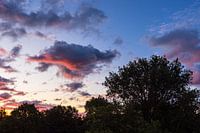 Bomen en lucht met wolken bij zonsopgang van Rico Ködder