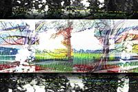 Kleurrijk landschap van een rij bomen. Abstractie en variatie in kleur en techniek. Rustige sfeer.