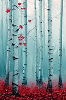 Te midden van een zachte mistige sfeer rijzen majestueuze witte bomen op, die de kamer vullen met een vredig aura. Rode bladeren geven het beeld een levendig accent en nodigen uit om te dromen. Deze harmonieuze compositie is ideaal voor de woonkamer, waar het een rustgevende en inspirerende sfeer creëert.