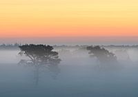 Een prachtig deken van mist over de Kalmthoutse Heide, dit samen met de mooie kleuren van de zonsopkomst.