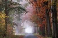 De kleuren in de herfst blijven altijd boeien. Het verkleuren van de bladeren van groen naar geel en dan oranje is zo mooi. En als er dan nog mist is, wordt het sprookjesachtig mooi. Op deze fraaie herfstochtend kwam ik dit laantje tegen met berkenbomen en andere mooie struiken. Het sfeertje was sereen en de bladeren kleurden door mist prachtig. Dit zijn de ochtenden waarop ik echt kan genieten en ik vroeg op pad ga met mijn camera om dit te fotograferen. Mocht u dit werk aanschaffen, dan wens ik u hiervan erg veel plezier.