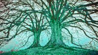 Digitale beeldbewerking op basis van een foto van 2 bomen.