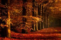 Foto van bomen in mooie herfstkleuren. De bomen staan op een rij, de bladeren hebben prachtige herfst kleuren. De foto is gemaakt bij Gasselte, november 2021