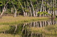 Geen kreken, geen Suriname. Mooi lijnenspel van bomen aan de rand van een kreek in het district Brokopondo in Suriname.
