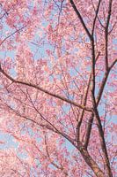 Kersenbloesems in Japan tijdens een zonnige dag met blauwe lucht in de lente of sakura seizoen. De bloem van deze bloesems is zacht roze.