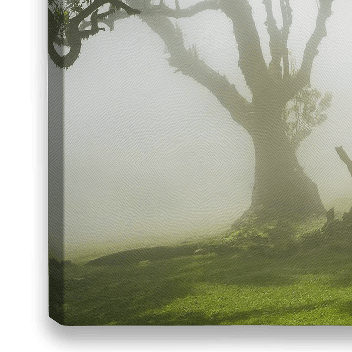 Koe tussen de bomen in een mistig, sprookjesachtig bos. Foto is gemaakt op het prachtige eiland Madeira, Portugal. Bekijk ook mijn andere foto's van Madeira.
