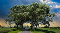 De bomen langs deze weg in het open Friese landschap zijn mede door de wind vergroeid tot een mooie groene tunnel.
