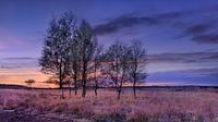 Koop de foto Bomen van de berk op een warme aangestoken heide bij zonsondergang van Tony Vingerhoets als print op canvas, aluminium dibond, (ingelijste) fotoprint, behang en ArtFrame. Voor jou op maat geprint in Fine-Art kwaliteit.