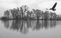 Deze bomenrij gaf een prachtige spiegeling in het rustige water , dit samen met de adelaar geeft dit een mooi rustgevend beeld.