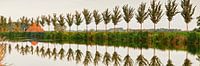 Panorama van bomenrij langs ringvaart van Beemster polder bij Zuid Beemster, Nederland