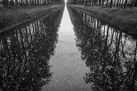 Weerspiegeling van bomen in de vaart van Brugge naar Damme.
