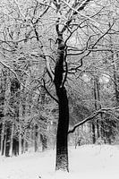Tak en stam tekenen hun eigen structuur, ontdaan van context. Wat blijft, is aanwezigheid.