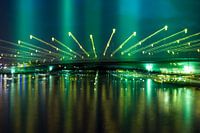 Die Bundesstadt Bonn am Rhein, bei Nacht mit faszinierender Wasserspiegelung.