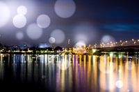 The city of Bonn on the Rhine, at night with fascinating water reflection.