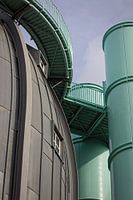 Karakteristieke koepelvormige dak met ventilatie torens van het Bonnefanten museum in Maastricht