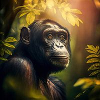 Bonobo aap die dromerig voor zich uitkijkt. Of zal er toch veel meer omgaan in dat koppie?
