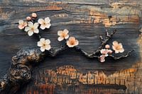 Over ‘Bonsai hout amandelbloesem oud industrieel oker kleur’ van Digitale Schilderijen