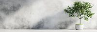Bonsai in witte pot tegen lichte muur met textuur panorama van Digitale Schilderijen