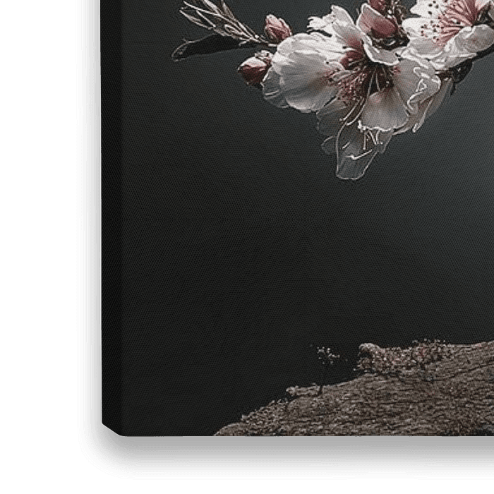 De bloemen springen helder naar voren tegen de donkere achtergrond, en het geheel straalt natuurlijke elegantie uit. Deze afbeelding is een subtiele…
